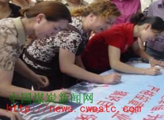 这是重煤集团松藻煤电公司物资供应部全体员工在近日举行的安全宣誓仪式上,立下的铮铮安全誓言,参加宣誓的员工,郑重地在安全誓言宣传条幅上签下了自己的名字,通过宣誓活动,促进全体员工增强安全意识,把安全生产牢记心中。这也是该部开展的“关心安全、关爱生命”为主题的安全生产月系列活动之一。