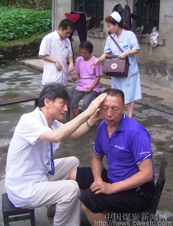 图文:南桐矿业总医院为灾民送医送药    本网讯 7月19日,重庆市万盛区万东镇箐溪村李子山社,南桐矿业总医院救灾医疗队主任医生刘怀清正在为该社受灾群众娄必方检查身体。近日,南桐矿区连降100年不遇特大暴雨发生洪灾,南桐矿业总医院组织救灾医疗队赶赴受灾乡镇,为灾民送医送药,走村串户向灾区群众宣传卫生防疫知识。