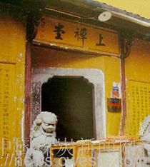 出了肉身宝殿,于是俺们从岭上南向而下,一路树木葱茏,真个清凉世界中穿行,当然还经过与肉身宝殿配套的十王殿什么的,俺也 就不提了,不大一会儿功夫即下到神光岭的半山腰处,寺庙虽顺山岭坐北朝南有些个气象,却门在东山墙谦虚地洞开着,哈哈,以“上禅”为名的寺就是有些个不一样,管它门朝哪里开,甚至都可以“无门为法门”嘛,何况大门朝东,岂不可以每一天“迎着朝霞放声歌唱”更加方便了么,这才叫与众不同也,哦,唱什么呀,和尚能唱甚,总不能唱“对面的女孩看过来”和“我的思念是不可触摸的网,我的思念不再是决堤的海”吧,所以当然是唱经也。