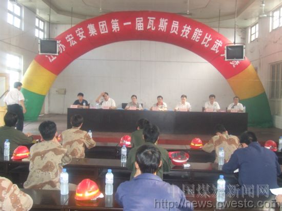 本网讯 7月28日,江苏宏安集团在唐庄矿举行了首届瓦斯员技能比赛,江苏省安全监察局徐州分局的领导现场作比赛评委,来自该集团唐庄矿、马庄矿、瓦庄矿三个单位的十八名队员参加了比赛,最终唐庄矿孙成波获得第一名,唐庄矿获团体组织一等奖。