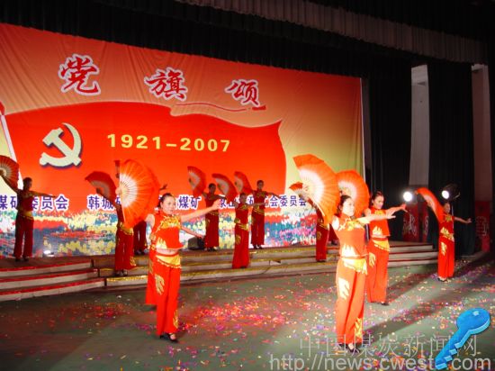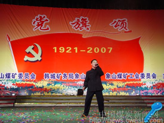 图片新闻:矿山职工自编自演为党庆添风采     本网讯 7月1日晚,陕西韩城矿务局象山矿在工人俱乐部召开“韩城矿务局象山煤矿庆祝党建八十六周年大会”。大会在雄壮的国歌声中开始,45名新党员进行了庄严的入党宣誓。大会对在安全生产经营表现突出的11个"五好党支部"、91名“六好共产党员”、20名“优秀党务工作者”和15名“党风廉正先进个人”和7个“先进班组”进行了表彰。 随后由象山矿各区队自编、自演了丰富多采的主题为“党旗颂”的大型文艺节目,为党庆增添了丰采送上了祝贺。
