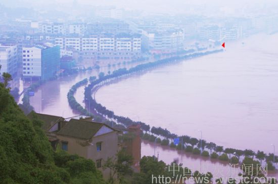 本网讯 连日暴雨,给小平故里广安带来灾难,河水陡涨,翻过沿河堤坝,侵袭了城北一带,水深2、3米。当地政府、公安、武警紧急出动抗洪救灾。 图1、图2: 7月6日晚,洪水已从箭头出上岸,当晚2时开始,上游的洪水又直泻而下,加重了灾情,整条滨江路汪洋一片。