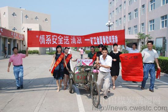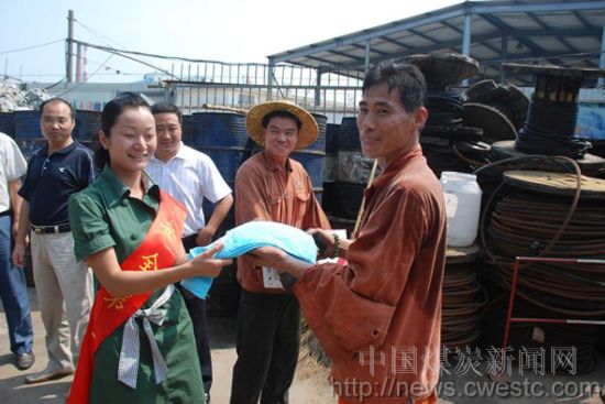 本网讯 盛夏祁东,酷热难耐。近日,为切实维护职工合法权益,确保广大高温环境下作业职工的身体健康和安全,安徽皖北煤电集团祁东煤矿工会带着矿泉水、雪糕、毛巾、慰问信先后到该矿综合机厂、产品质量部、废旧物品回收中心等单位积极组织开展“情系安全送清凉”活动,受到职工的一致好评。