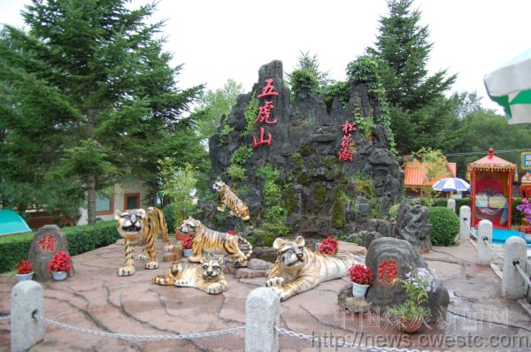 图五:松花湖中的五虎山公园将山、水、虎和谐巧妙地融为一体