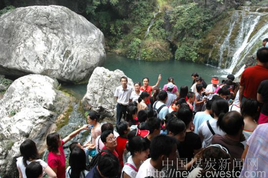 进了景区,果然名不虚传,美景倒是不少,但俺的第一大感受并不在此,而是这里的“人”。于是,便想告诉还没有去过此地而正想动身前往的网友们,千万不要赶在这个烈日炎炎的季节里去。这并不是俺自私,想独享这美景。当然,你若是嗅觉不怎么灵敏,并且耐得住大汗淋淋,倒也真个是炼人的好去处。此话并非妄言,有图为证。