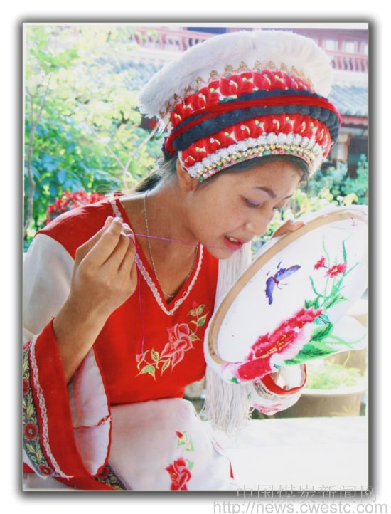 绣花荷包是云南白族爱情的象征,它是白族姑娘聪明和智慧的结晶。云南白族姑娘心灵手巧,能绣出生动逼真的花鸟鱼虫、珍禽异兽的图案,不仅会受到旁人的夸赞,还会得到小伙子的青睐和爱慕。当姑娘和小伙订下终身后,白族姑娘便把精心绣成的绣花荷包作为爱情的信物送给自己的心上人,表示已把一片诚心交给了对方,接受荷包的小伙子要一辈子把它挂在身上,以示对爱情的坚贞不渝。