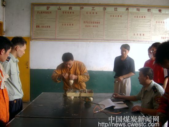 本网讯:为了提高救护指战员抢险救灾能力。检验救护指战员在工作中必须做到服从命令、听从指挥、团结协助、积极参战。更好地发挥救护指战员 “练兵千日、用兵一时”,“招之即来、速战能胜”的战斗作风。8月18日,川煤芙蓉集团白皎煤矿救护队举行了夏季比武赛。安全矿长邱居德、工会、安监处等部门领导亲临现场指导工作。 本次比武赛分别进行了集体、个人项目角逐,集体项目包括闻警集合、下井准备,一般技术砖密闭操作;个人项目有,仪器方面,正压氧气呼吸席位操作、苏生器操作,体质项目有爬杆、引体、举重、下蹲、激烈运动。经过一天的紧张比赛,一小队经过相互配合、团结协作夺得集体一等奖。队员刘明春、谭平经过奋力拼搏夺行个人项目一、二名,队员潘福平,金远中、匡诗均、夏飞分别获得第三 名。副矿长 邱居德等领导向获得名次的集体和个人颁奖。