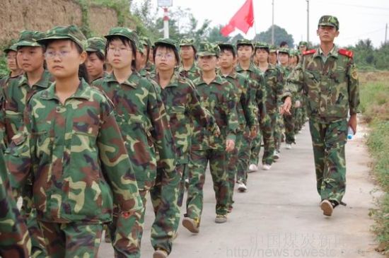 蒲白矿务局高中新生进行军事训练汇报表演