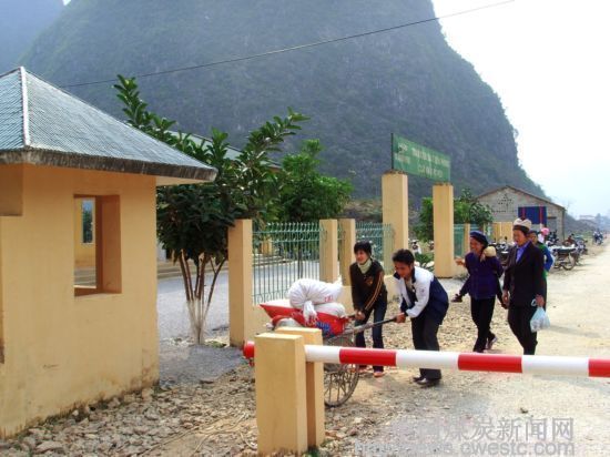 广西与越南接壤的陆地有东兴、防城、宁明、凭祥、龙州、大新、靖西、那坡等8个县(市),陆地边境线长1020公里,共有103个乡镇与越南毗邻,大多为崇山峻岭,两国边民素有“互市”的传统。 图一为靖西岳圩口岸越南检查站 图二为靖西岳圩口岸共同飘扬的两国国旗 图三为高高飘扬的中国国旗 图四为飘扬的越南国旗 图五为到中国边境赶集的越南人 图六为靖西龙邦口岸 图七为越南小商贩 图八为越南小商贩 图十一为越南公益宣传广告牌