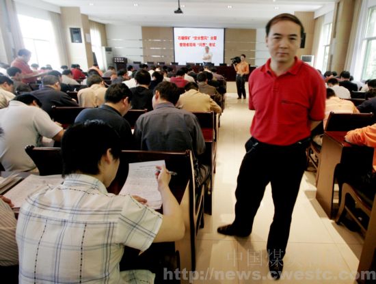 离管理岗位……”9月20日,重煤集团石壕煤矿在“安全整风”会上推出“会后必考”政策,突如其来的“会议精神现场问责考试”让一些不善于做笔记的管理者束手无策,提升了基层科队、班组管理者对安全执行力的落实。“今年最后103天,石壕煤矿安全工作重点抓哪些?”“井下现场出现异常情况时,管理者必须做什么?”“跟班管理者、班组长、安全员到达现场时,首先该做什么?”一道道从会议精神中提取的考试题,变成了一张现场测试管理执行力的试卷,摆放在管理者面前,200多名来自于科队、班组的管理者参加了“安全整风”现场“问责”技能考试。 简单的会议精神变成考试题,安全执行力条款变成填空题,许多管理者认为,企业利用会议精神“问责“管理者的安全执行力,热炒热卖的现场考试,“考问”的 是基层管理工作的落实。安全科科长官全福说:“基层 管理者做到心记、笔记,用心去理会会议精神,再难的考试也不应该难倒管理者,否则,基层管理就会出大事故,员工的安全就没有保障。”采访中,李宗福矿长说:“今天,借‘安全整风’内容对管理者进行工作能力测试,不是为难管理者,而是告诫那些在会议中打瞌睡,带着耳朵一听了之的管理者,不踏踏实实抓安全落实就必须下课;不实实在在抓现场执行力就不是合格的管理者。同时,告诉各级管理者:安全‘执行力’重在落实制度,重在抓好现场监管,重在抓好员工行为教育,煤矿安全才有保障。”图为石壕煤矿落实“安全整风”会,现场拷问管理者的执行力。