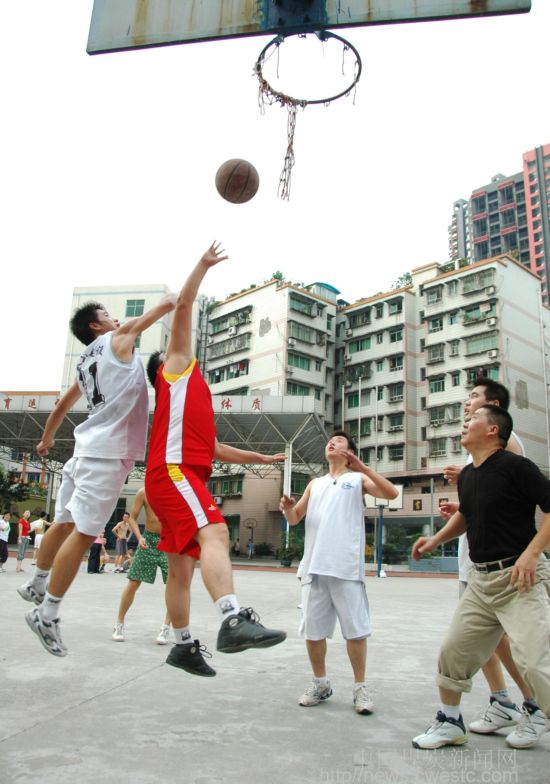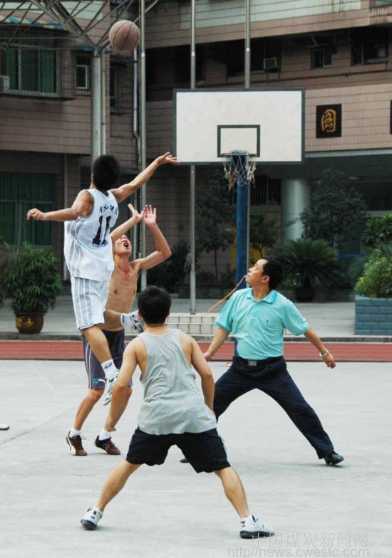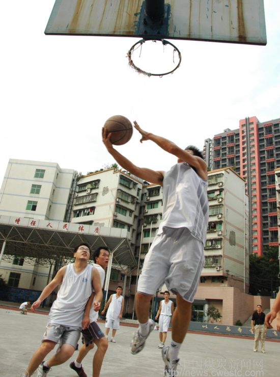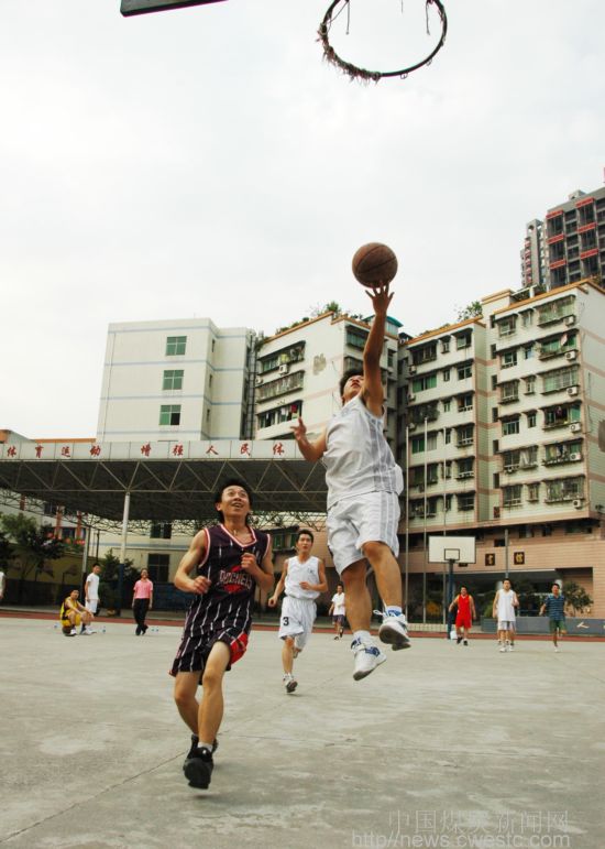 本网讯 重庆一三六地质队针对近年新增大学生多的特点,组建了篮球、足球、羽毛球等各类业余体育爱好队伍,不断开展各类比赛和活动,丰富了年轻地质队员的业余文化生活,同时锻炼了他们强健的体魄。图为,近日该队金灿公司球队和队联合球队比赛中队员突破上篮的情景。