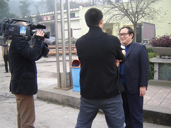 1月10日,煤炭科学研究总院重庆研究院的专家、重庆电视台记者一行6人,在永荣矿业公司总工程师黄华良的陪同下,专程驱车到永川煤矿实地采访调研了井下瓦斯抽放采用新型聚乙烯管材、管件的效果情况。专家和记者分别现场采访了永荣矿业公司专业工程师和瓦斯发电机组安装施工工地。据悉:新型聚乙烯材料可以广泛运用于矿井的给、排水管道,压风管、抽放瓦斯管及喷浆管道;矿井的电力电缆、光缆通讯信号电缆的保护管;高瓦斯或粉尘环境下的压力或非压力管道;公路、铁路、隧道通风、排水管道。永荣矿业公司正在韦家沟煤矿建设两台500千瓦的瓦斯发电机组,运用瓦斯发电,造福人类,可每年创收近600万元。韦家沟煤矿的瓦斯发电机组可望年底并网发电。永川煤矿安装了瓦斯锅炉,500千万瓦斯发电站兴建计划已经通过立项。如今,该矿每天抽放的10000方瓦斯,通过采用聚乙烯管道抽放到地面,用瓦斯锅炉取暖供矿区职工洗澡,取代了过去的燃煤锅炉,促进了矿区的环境保护。 图为该矿总工程师、副总经理黄华良正在接受《重庆电视台》采访