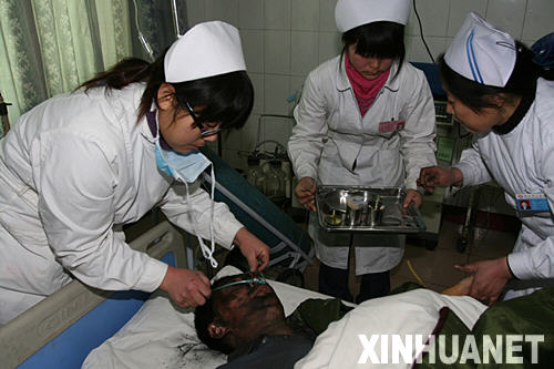 1月17日,一名获救矿工在医院接受治疗。 新华社发 据新华社郑州1月17日电 记者从河南省煤炭工业管理局获悉,经过11个多小时的全力救援,河南禹州市鸠山乡大仝煤业有限公司16日透水事故中被困的17名矿工,于17日4时36分成功获救。 1月16日17时30分,禹州市鸠山乡大仝煤业有限公司发生煤矿透水事故,17名矿工被困井下。接到事故报告后,河南省副省长史济春、副秘书长王春生,省煤炭工业管理局局长李恩东及相关部门负责人迅速赶赴现场指挥抢险,经过全力救援,17名矿工在被困11个多小时后全部获救。
