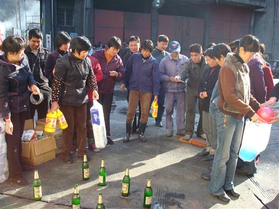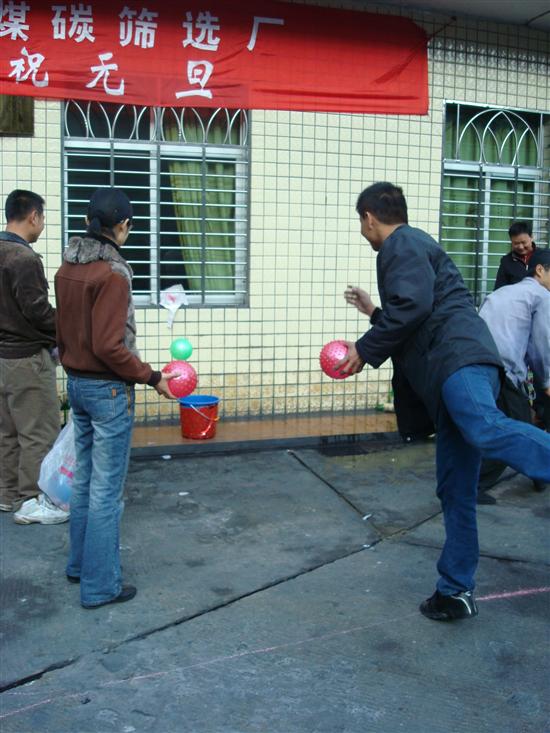 为庆祝2008年元旦,福建省天湖山下洋煤炭筛选厂工会准备了丰富的游戏项目和奖品,全厂职工家属在钓鱼、套圈、敲锣、投篮等游戏中欢度新年。