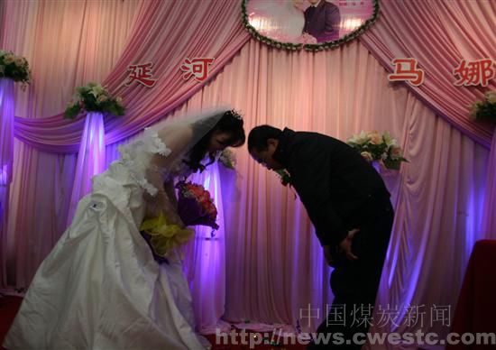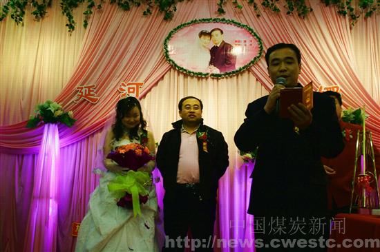 证婚人代表政府向新郎新娘发“照”
