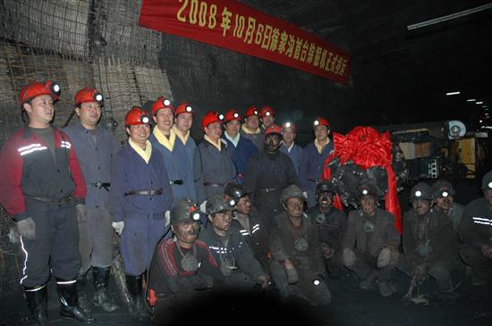 1.徐家沟矿首台综掘机投入使用揭彩仪式上矿领导与综掘队职工在一起。