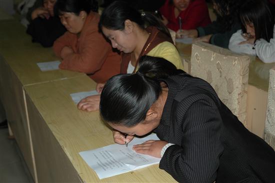 4.“矿嫂”们在会议现场写对丈夫的安全亲情寄语。