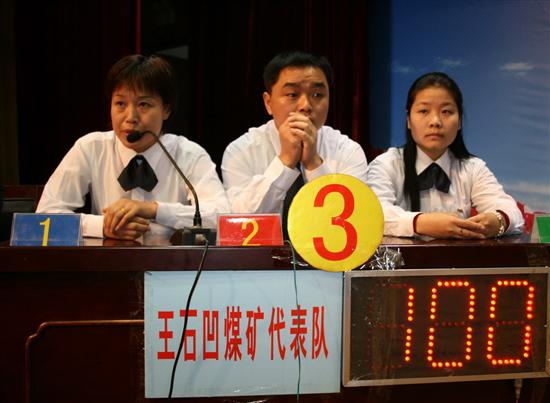9月24日至26日,铜川矿务局《劳动合同法》知识竞赛按生产矿井组、辅助单位组、市区单位组三个赛区进行预赛。值此期间,陕西省煤矿总工会主席卢绍斌来铜川矿区调研,也观看了一场预赛,对铜川局开展的竞赛活动表示赞赏。经过三天激烈的角逐,玉华煤矿、下石节煤矿、王石凹煤矿、华瑞公司、奥博集团、一五三厂、多经公司、运销公司、机关工委等9支代表队从参赛24个代表队中脱颖而出,参加决赛。9月28日,在阵阵秋雨中,《劳动合同法》知识竞赛决赛在煤业宾馆多功能会议室拉开帷幕。 竞赛分个人必答、集体必答、抢答题、风险题四轮进行。进行必答题环节时,选手们流利的回答赢来场上热烈的掌声。当进入抢答题环节时,场上竞争异常激烈,有的参赛队因心情激动,违规提前按响抢答器,被遗憾的扣去分值;有的因过于紧张,熟记的答案被忘记,懊恼的表情写在脸上;特别突出的是华瑞公司一名叫刘晋的女选手,她流利的回答让人们仿佛有了错觉,就像一台打印机接到执行的命令,马上就传输了下来,没有一点磕绊,她的电脑式回答让台下的观众站起来伸长脖子看看选手到底是什么样的人。她的精彩表现成为赛场上一个亮点。当比赛进入最后的风险题环节时,各参赛队慎重选择,认真回答,华瑞公司领先出线,成为今天决赛的第一名。但同时又出现三个并列180分、三个并列170分的代表队,竞赛进入白热化。经过仲裁委员会裁定,要从三个并列180分的代表队决出一个一等奖,三个并列170分的决出一个二等奖,通过抢答题环节进行最后的角逐。经过激烈的竞争,最后,华瑞公司、王石凹矿获得一等奖,玉华矿、一五三厂、多经公司获得二等奖,机关工委、下石节矿、运销公司、奥博集团获得三等奖。局党委副书记李志科、矿区工会主席张访文亲自为获奖选手颁奖,向他们表示祝贺。 ![]() ![]() ![]()