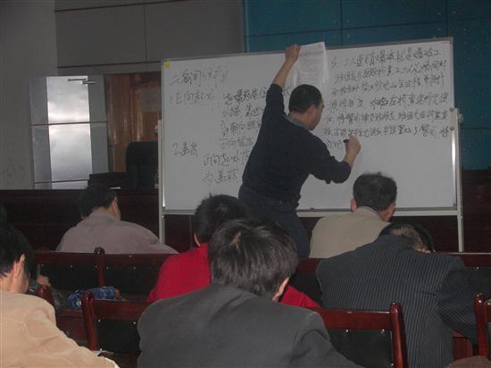 该矿经过调查,充分利用每天晚上6:00—8:00中的这段时间,组织生产、安监部门的专业技术人员为全矿不当班的职工进行安全知识和技能培训,既不影响企业正常的生产,也使职工学到了工作中需要的生产知识,提高了职工的操作技能,受到了职工的欢迎。 图为该矿技术人员在给职工授课。