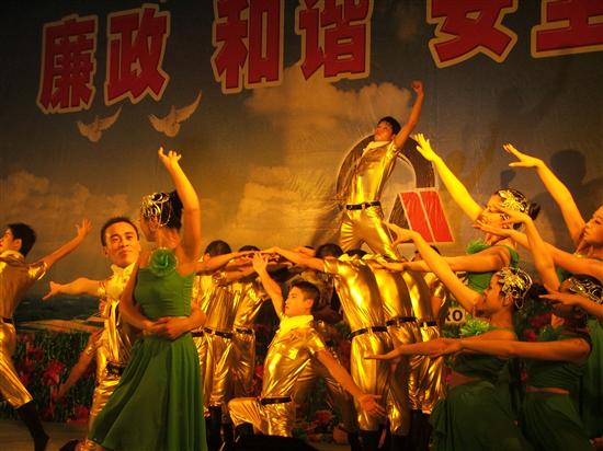 川煤集团党委委员、纪委书记、工会工作委员会主任张万松,纪委副书记、纪委办公室主任、审计监察部部长张清,工会工作委员会专职副主任、直属机关党委专职副书记李萱,内江市国资委纪委书记邓维明,威远县政府副县长刘维帝等领导,在威远煤矿党委书记李志顺,副书记、纪委书记、工会主席国民利的陪同下,与1000余名矿区职工家属一道,兴致勃勃地观看了文艺演出。 晚会在乐器合奏《难忘的旋律》中拉开帷幕;随后表演的有独唱《向往神鹰》、手语舞蹈《感恩的心》、歌伴舞《江山》、配乐诗朗诵《一个强大的祖国》、舞蹈《欢腾》、《雪之族》、《亲爱的中国我爱你》、《唐古拉风》、《欢庆》、《翠竹生生》、《春风里的阳光下》等节目,形式多样,内容丰富。特别是该矿自编自演的舞蹈《矿山的明天美如画》、音乐快板《廉政文化进矿山》更是夺得了观众经久不息的掌声。《矿山的明天美如画》以故事的形式,讲述了“阿妹到井口送阿哥,嘱咐阿哥注意安全生产,并回忆当年到井口接阿爸,遇到的是阿爸发生安全事故的噩耗;阿妹再次到井口接阿哥,接到的是阿哥荣获安全标兵的喜讯”,这一悲一喜的情景,让我们深切体会到安全生产对矿山发展的重要,有了安全生产的保障,矿山的明天,一定会更加美好;这一节目把整台晚会的气氛推向了高潮。 这台晚会以安全暨廉政文化建设为主题,是威远煤矿为参加川煤集团“安全文化暨廉洁文化进企业”文艺汇演而精心准备的。整台晚会共有21个节目,连贯紧凑,高潮迭起,不时赢得观众热烈的掌声,演出结束后,张万松等领导与138名演员亲切握手并合影留念。