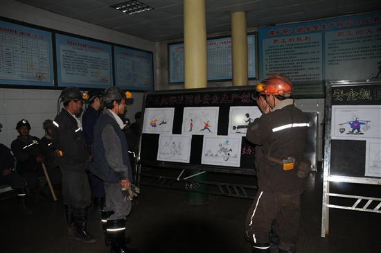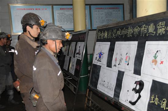 (本网讯)为进一步营造决战四季度安全宣教的浓厚氛围,山东井亭公司团委近日在井口举办了安全漫画展览,一幅幅生动深刻的安全漫画使干部职工更进一步认识到按章作业保安全、安全生产创效益的重要性,从而牢固树立安全就是效益、安全就是幸福的思想,为决战四季度各项任务目标的顺利实现筑牢思想防线。图为职工在下井前观看安全漫画。