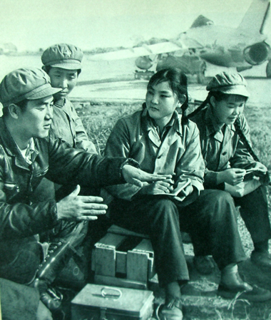 《红色娘子军》里的吴清华 现代舞剧《白毛女》中的喜儿 所谓8个样板戏,是指1968年前后推出来的8个,当时并不包括《杜鹃山》,除了上述7个外,还有《奇袭白虎团》,但中间没有女主角。 样板戏,不仅是“戏”中的样板,也是其他方面的样板,包括“审美”。博主为了使这个说法显得更可信,这里,以1966年—1970年文革最激烈的年代里出版的《人民画报》、《解放军报》《中国画报(英文版)》等报刊所发表的女姓照片为例,择其最美者,组成两个“方阵”,借此回顾一下过去年代里,中国女姓曾经的美丽。 第一个方阵当然是女民兵。毛泽东主席曾经有《为女民兵题照》的诗:“飒爽英姿五尺枪,曙光初照演兵场。中华儿女多奇志,不爱红装爱武装。”因此,画报里,最多的也就是“女民兵”的形象,而所有的“女民兵”,一般是“飒爽英姿”的标准版:
