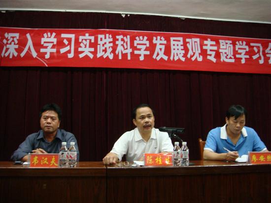 在会上,局党委副书记陈桂生,概括地讲了全国学习的情况,就科学发展观的实质精神,结合煤矿的行业特点和本局当前面临的形势,如何以“打赢综合机械化采煤、打赢干部职工思想转变”这两大攻坚战进行深刻的论述。与会人员,边听边认真地记着笔记。 通过深入开展学习实践科学发展观,使党员干部职工对科学发展观有了新的认识,增强了广大党员干部职工实践科学发展观的自觉性和坚定性。 局党委副书记陈桂生发言
