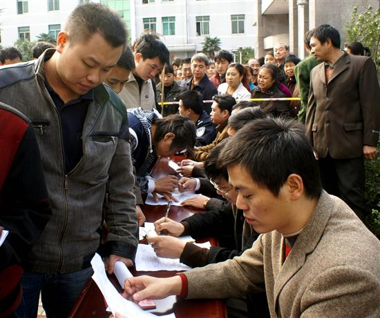 由于绿煤公司是国有企业,且实行机械化采煤,安全系数高,劳动保障及各种保险、福利待遇较好,近段时间以来,广东等地的部份中小型企业纷纷关闭破产,许多外出打工的人员因此失业而回家乡找工作,因此一贴出招工启示就受到许多求职者的青睐。 为了确保本次井下补员招工工作的顺利进行,保质保量地完成补员招工任务,该公司成立了综合协调、资格审查、政审保安、岗前培训、咨询答疑等6个井下补员招工领导小组。并严格按招工条件和招工流程进行报名、资格审查、体检、文化考试等。目前各项招工工作正在紧张而有序地进行当中。 ![]()