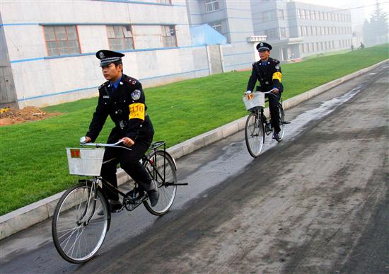 本网讯: 近年来,兖矿集团东滩煤矿把建设“和谐东滩”作为维护“改革、发展、稳定”大局的重要举措,紧密结合矿井实际,加大治安巡逻力度,近日为执勤巡逻的民警配上了“专车”——自行车,巡逻的频率、范围进一步加大,发现、处理问题更加及时,确保了东滩一方平安。