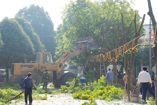 11月28日一大早,一场浓雾刚过,在右江矿务局小龙矿矿区内,在矿领导的带领下,在全矿范围内开展大清理活动,营造了“我在小龙我爱小龙”整洁舒适的环境。图为广大职工正在整容矿区风景树林的情景。