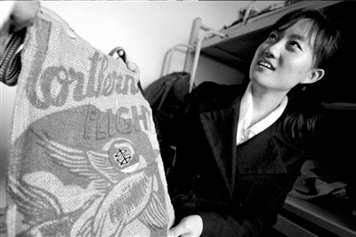 ![]() 石嫣展示她从美国带回的手工制环保袋。 本报记者范继文摄