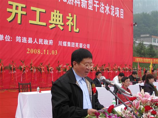 筠连隆重举行开工典礼。宜宾市市委书记、市人大主任杨冬生,宜宾市常务副市长徐进、副市长葛燎元,川煤集团党委书记、董事长肖天任,总经理邓嘉德,筠连县县委张书记、王县长及芙蓉集团公司等领导出席开工典礼。川煤芙蓉公司筠连日产4000吨熟料水泥项目投资概算近8亿元,计划建设工期为14个月,预计项目建成后年产值可达7.23亿元、实现利税1.42 亿元左右。该项目采用新型干法预分解生产工艺,附带9000千瓦纯低温余热发电。项目建成后可实现年产熟料150万吨,年产水泥200万吨,年发电量6480万千瓦时,年供电量5800万千瓦时。该水泥生产线的顺利开工和建成运行,不仅能够充分地利用筠连县丰富的石灰石资源和工业废渣发展循环经济,促进地方经济和社会发展、把潜在的资源优势转化为现实的经济优势、带动地方相关产业的发展、积极促进就业,而且对于芙蓉公司乃至川煤集团发展壮大非煤产业,实现企业“十一五”发展规划具有十分重要的意义。 在开工典礼上,宜宾市市委书记杨冬生、川煤集团董事长、总裁肖天任作了讲话,希望川煤芙蓉公司抓住机遇,趁势而上,进一步弘扬伟大的抗震救灾精神,以昂扬的士气努力开展项目建设。一手抓项目的环保建设,在实现经济增长的同时,充分保护和改善筠连的生态环境,促进宜宾市水泥行业结构调整的步伐。一手抓项目工程管理,制定合理的建设计划,精打细算,统筹兼顾,抓好项目建设的质量、速度和投资控制,力争早投产早见效,为建设四川 “5.12”地震灾后恢复重建生产更多优质水泥,为推进筠连经济持续、快速、稳健发展,构建和谐社会做出积极的努力!实现“艰苦创业三五年,再造一个新芙蓉”的目标! 川煤集团芙蓉公司总经理魏正均表示,芙蓉公司将进一步加快项目建设,在保证工程建设质量的前提下,抢时间、拼进度,强力推进项目建设,力争早日把筠连日产4000吨水泥生产线建成投产、达产,把该项目建设成为川煤集团内部和宜宾市实现水泥生产规模化、集约化和现代化生产的典范,为四川地震灾后恢复重建、创建“百亿川煤”做出应有贡献!