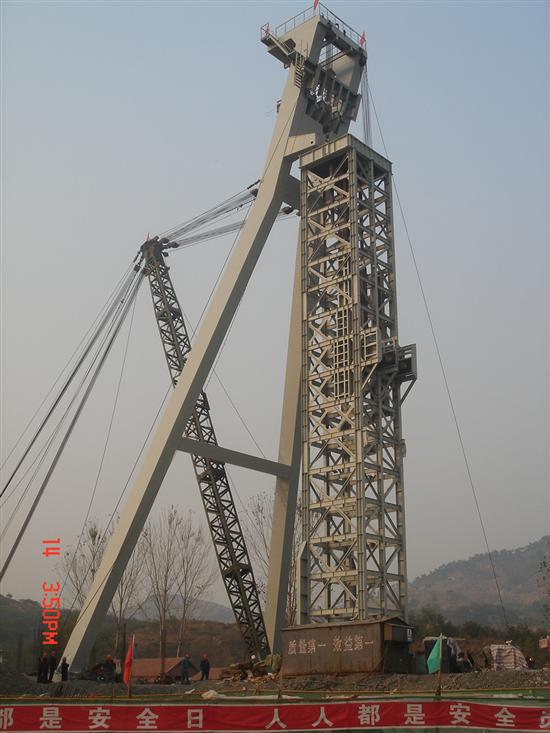 韩旺铁矿主井井架高50米、重280多吨,由形状不一、长短不同的支架、花撑等上万个零部件构成,仅螺丝等标准件就有2吨多重。安装过程中,该项目部广大干部职工克服了工程时间紧、任务重、工期短种种困难,奋力拼搏,积极采取各种措施排查困难,赢得了矿方和监理方的称赞。韩旺铁矿主井井架的竣工也标志着设备安装公司在非煤矿领域取得了又一胜利。