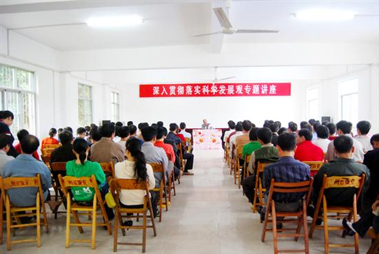 (本网讯)11月4日下午,州景矿在职工培训中心进行贯彻落实学习实践科学发展观专题讲座,矿领导、副科级以上管理人员、部分党员代表共96人倾听了讲座,矿党委书记莫光辉进行了主讲。