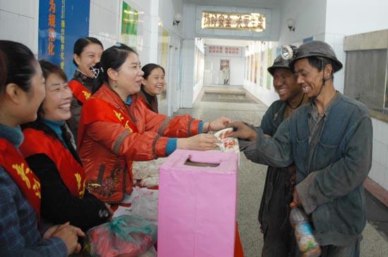经过一定的物质奖励和教育引导,使职工们在得到了一次全面而系统的安全知识巩固。女工们通过这种到井口与一线职工进行面对面的对话方式,缩短了与职工之间的距离,增加了相互间的友情感,参生互动,由此加大了女工和一线职工联手筑安全的和谐氛围。职工们答题踊跃,纷纷说:“不仅能学到安全知识,听到贴心的话,还能获得奖品,更重要的是能到井下进行了一番实践后,已将安全知识全完印记在了脑子里”。 有奖问答结束后,女工们又来到洗衣服为下井职工缝补工作服、钉纽扣,看到职工们工作服需要缝补的地方很多,女工部长魏华当场决定,以后每个星期将固定一天的时间,安排女工专门为职工们缝补工作服,及时的将女工们对一线职工的关爱送达到他们身边。