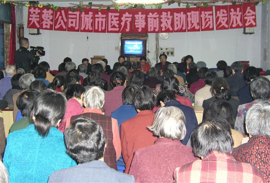 10月4 日下午在珙县民政局的支持下,在芙蓉集团公司职工医院的配合下,由芙蓉集团公司社管委在白皎社区塘坝山会议室主持的隆重现场会上,社管委主任兼书记余泽源同志亲自为349名“低保户”发放了《医疗事前救助卡》。这批享受医疗救助的人,大都是年龄较大,身体长期患慢性疾病且长期服药的“低保户”,特别是在世界金融风暴席卷全球的时节,他们凭着这张医疗救助卡,可以在所指定的四家医院免费就医,全年门诊医疗费300元,比公司35岁以下在岗职工的门诊医疗费还多80元,可想这项政策无疑对贫困家庭是多么大的扶助,是地方政府在地方财政十分紧张的情况下仍对我公司贫困家庭的关怀,表现出他们“深怀爱民之心,恪守为民之道”一种崇高职业精神。 349名“低保户”接过《医疗事前救助卡》,喜笑言开,称赞道:“政府好,好政府”,有许多人还流下了热泪。与其说她们接到了医疗救助卡,还不如说她们接到了“春雨”。 医疗事前救助卡发放现场