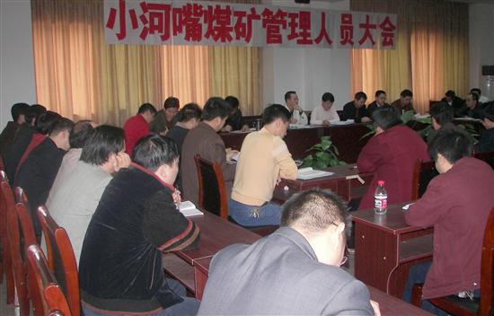 本网讯 11月6日,小河嘴煤矿矿召开了全矿管理人员大会,会议由矿长陈小灵主持,矿党委书记张光宇及在矿的领导,机关及区队不当班的管理人员100余人参加了会议。