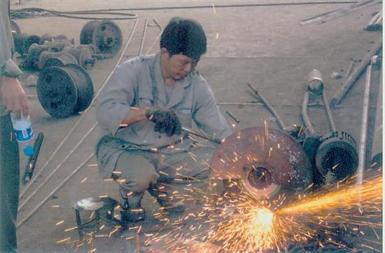 该矿机电工区电钳工在开展切割、焊接等技术比武活动