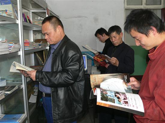 图为该矿综放队员工上班前先到学习书屋查阅书籍。