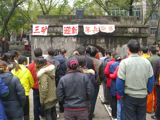 在安全生产形势严峻,经济形势滑坡的情况下,天府三矿沉着应对,鼓士气,聚合力,稳队伍,挑战压力,迎新年。为此,天府三矿工会积极行动起来,以多项活动努力协助矿做好职工队伍建设工作,鼓舞职工提升素质,充满朝气、同心同德地在岗位上尽职尽责地推动企业前进。12月25日,天府三矿百余名矿井男女职工齐聚矿体育场,在该矿工会的组织下举行了隆重的万米长跑活动开幕式,由各挂钩单位联合组织的11个参赛队的男女职工在寒意中个个精神抖擞,跃跃欲试。随着一声号令,百余名男女职工如潮水般地从体育场出发,开始了万米长跑。整个比赛路程是从矿区沿着新修的公路到附近的火车站,然后返回出发点。规则要求每个参赛队必须有8名(3女5男)以上职工参赛才能计算成绩。比赛中,参赛职工相互鼓励,相互帮助,充分发扬了团队协作精神,锻炼了团队协作能力。职工们通过参与类似活动,也增强了笑看困难,挑战压力的信心与勇气,从而使企业以更旺盛的生命力推进来年工作。