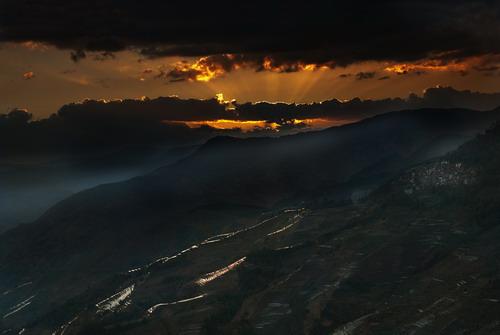 清晨太阳从地平线缓缓地升起,阳光从云缝里穿了出来,深深呼吸清新地空气,顿感精神百倍,新的希望,新的目标,新的一开又开始了!