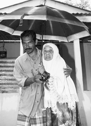 核心提示:现年106岁的马来西亚老太乌坤督3年前嫁给了现年37岁的男子莫哈末诺,这是她第22次结婚,如今两人已幸福地度过了三年。