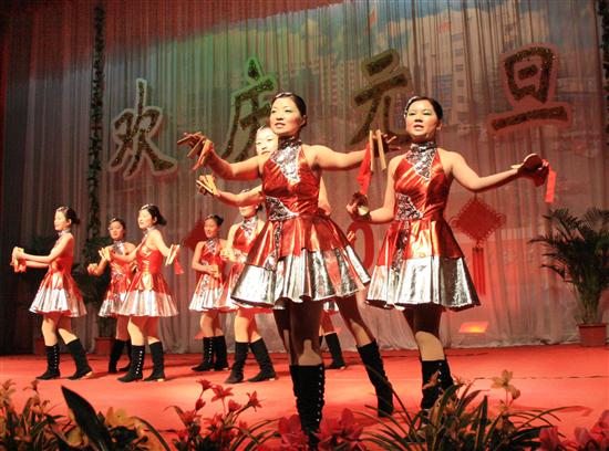 ![]() ![]() (本网讯)12月28,郑煤集团超化矿阳光剧院内观众座无虚席,热闹非凡,舞台上彩灯闪烁,歌声悠扬。庆祝2009年元旦文艺晚会在这里隆重举行。矿长郭金陵、党委书记于二套携全体矿领导和一千多名职工家属一起观看了本次晚会演出,并给予了高度评价。 晚7时整,晚会在安全代表团现代舞《 爱情三十六计 》喜庆、欢快的旋律中拉开了序幕,十六位青年演员身着鲜红的节日盛装,挥舞着彩带,轻盈的舞姿旋转流畅,展现出了煤矿工人的时代风采。在歌曲《山歌好比春江水》、《母亲》节目中,演员们情绪高亢,放声高歌,歌唱伟大的祖国,歌唱祖国改革开放的大好形势,歌唱超化煤矿建设发展的成就。经营代表团的诗朗诵《超化礼赞》,物业代表团的音乐快板《超化松》,采煤代表团的双口快板《辉煌超化十五载》,以新颖别致的构思,回顾了超化煤矿的发展历史;以优美的诗篇歌颂了伟大祖国改革开放以来所取得的辉煌成就;以新颖的艺术表现形式,从不同侧面反映了矿区建设日新月异的变化。机电代表团的小品《梦圆金秋》,以创新的艺术表演方式再现了每个考上大学的矿工子弟,都能在企业关怀下走进高校进行深造的感人情景。小品《戏缘》、舞蹈 《美丽大脚》等节目从不同角度体现出了煤矿职工家属庆祝丰收成果,喜迎新年的欢乐喜庆氛围。物业代表团演出的大型舞蹈《欢天喜地》,演员阵容强大,气势恢弘,以娇美的舞姿,靓丽的装饰,将晚会推向了高潮,赢得了观众雷鸣般的掌声。 节目结束后,郭矿长、于书记携全体矿领导健步走上舞台同演员一一握手,祝贺演出圆满成功,为获得一等奖的采煤代表团、二等奖的安全代表团、机电代表团,三等奖的物业代表团、经营代表团和掘进代表团颁发了奖牌和奖金,并同全体演职人员合影留念。