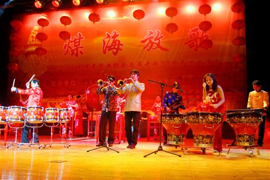 (本网讯) 30年波澜壮阔,我们一起走来;30年神州巨变,我们一同见证--由山东省煤炭工业局、山东省煤矿工会、山东省煤矿文化体育协会主办、兖矿集团等七大煤炭企业集团协办的“煤海放歌--山东省煤炭行业纪念改革开放30周年巡回演出”,12月29日晚在东滩矿职工影剧院隆重举行。50多名文艺工作者为发展迅猛、成就斐然的山东煤炭工业欢歌起舞,热情讴歌改革开放30年来取得的伟大成就。