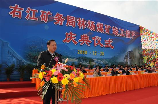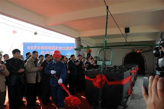 [本网讯] 在右江河畔,在布洛陀仙居的敢壮山下,在新年来的之际,又有一颗闪耀的新星——右江矿务局林场煤矿终于建成投产! 林场煤矿于2003年开工建设,年产规模25万吨,所产优质长焰煤发热量高、低硫低灰,是百色建设工业新市又一处优质能源基地。 林场煤矿建成投产,凝聚了各级领导对百色老区煤炭产业的关怀与呵护!先后有国家发改委、国家安监总局、国家煤监局、自治区党委政府及市委市政府等领导光临指导,寄托着多少热情的企盼。林场煤矿建设者,风餐露宿,艰苦奋斗,克服重重困难,做出了巨大贡献。汗水凝聚希望,艰辛铸就未来!林场煤矿投产后,又将再次迈开新的步伐,不断进取,向着现代化、花园式、本质安全型矿井目标迈进。右江矿务局人将以新的姿态,新的机械化建设成就,报答各级领导、各界人士对右江人充满期待的殷切关怀! 图一为百色市领导宣布竣工投产。 图二为从井下拉上地面的优质煤炭