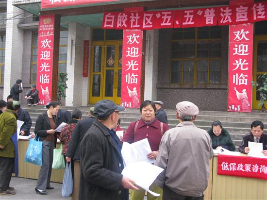 (本网讯)在“五五”普法规划第三个法制日之际,12月3日,川煤芙蓉公司社管委白皎社区,在白皎矿俱乐部前举行了声势浩大的“五五”普法宣传日活动。