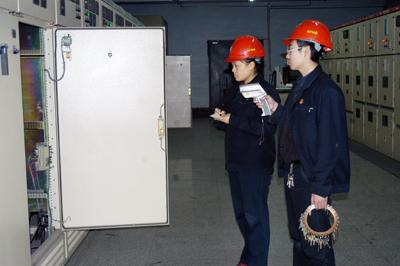 图为电气车间运行人员对10千伏变电室进行运行检查。