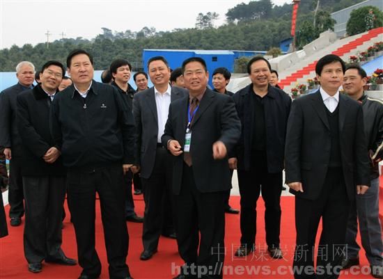 国家煤矿安监局局长赵铁锤在区安监局局长陈鸿起、区煤监局局长黄文标、百色市市委副书记吴宇雄、百色市副市长梁兵、广西百色矿务局局长叶仿拥陪同下,视察东怀煤矿。
