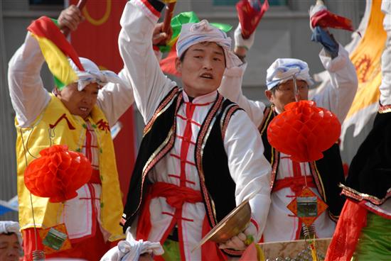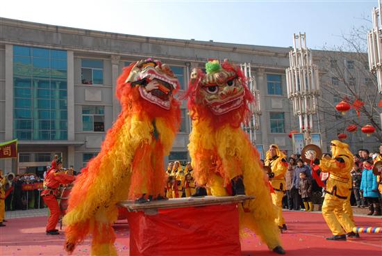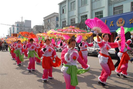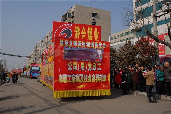 威猛的狮子舞起来、喜庆的锣鼓敲起来、欢快的秧歌扭起来……2月20日,农历正月十四,澄合煤业公司办公楼前人山人海,热闹非凡,基层单位13支秧歌社火队齐聚在一起,进行了精彩的锣鼓秧歌表演,给元宵佳节增添了许多欢乐喜庆的气氛。公司(局)领导王忠义、李永刚、沈兰禹、肖绪才、杨建旭观看了演出。 今年锣鼓秧歌表演不论从演员阵容、气势、规模、种类来说,都是澄合近十年来未有过的。一位年过花甲的老者告诉记者,他年年都参加扭秧歌表演,今年这次是场面最热烈的。他说,澄合的发展越来越快,澄合职工家属的生活越来越好,我们的秧歌也越扭越欢快。据了解,这次元宵社火表演参与人数达一千余人,年龄最大的已经近80高龄了。 上午9时30分,一阵震耳欲聋的锣鼓声拉开了表演的帷幕。局机关老干处的队员们,或手挥彩扇,或舞动彩绸,或手执花伞,伴着欢快愉悦的鼓点,欢快的扭动着。旱船、媒婆等装扮和滑稽表演,引得周围群众笑成一团。铁运处的小伙子们个个精神抖擞、意气风发,铿锵的鼓点惊心动魄。物业中心30名女工手执花伞和彩扇,翩翩起舞,给人以美的享受。供销公司两只威猛的雄狮或跳跃,或翻腾,活灵活现,口中还不时吐出“祝全局职工新春快乐”的条幅。猪八戒背媳妇、大头娃娃、武术表演、奥运福娃、银鼠闹春以及济公、西游记等人物造型,幽默诙谐的表演,使得现场的喜庆氛围越来越热烈。二矿公司、矿业公司、董家河煤矿近百人的威风锣鼓,庞大的阵容和磅礴的气势,博得观众的阵阵掌声和喝彩声。 围观的群众纷纷说,这激昂的鼓声敲出了澄合人的喜悦,敲出了澄合人的气势,更敲出了澄合人决战2008,实现近期目标,建设美好澄合的豪情! 11时40分,11辆主题鲜明、装饰华丽、造型别致的彩车,从县城七路浩浩荡荡向北驶去,向社会各界人士恭贺新春。喧天的锣鼓,欢快的秧歌,吸引了街道两旁的行人纷纷驻足观看,大家个个脸上绽放笑容,兴高采烈、目不暇接地观看表演,有的掏出摄像机、照相机赶忙记录下这美好的一幕。 红红火火的社火,红红火火的秧歌,闹红了百里矿区,闹红了澄合大地,伴随着喜庆与自豪,澄合人可以自信地说,2008年,澄合煤业公司的各项事业将更加红火,澄合的明天一定会更加美好!
