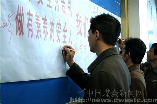 这天上午,临涣煤电有限责任公司综掘区和掘进二区协安分会的领导也兴致勃勃来到会议室,他们把“与不安全行为告别,做有素养的安全人”活动的目的和意义,向职工们进行了认真的说明,同时围绕不安全行为给安全生产及职工家庭带来的危害进行了深入的阐述,希望职工从自身安全生产出发,积极发现自身在安全生产中存在的各种不安全行为,找出原因,进行整改,同时坚决制止工友的冒险蛮干行为,营造良好的安全工作环境。与会职工纷纷响应并郑重在条幅上签下自己的姓名,决心从自身做起,做有素养的安全人,为奋战二季度贡献力量。